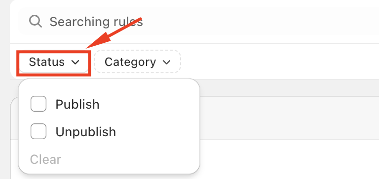 At any time, you can use the Clear option within the filter dropdown to remove applied filters and return to the full rules list.
