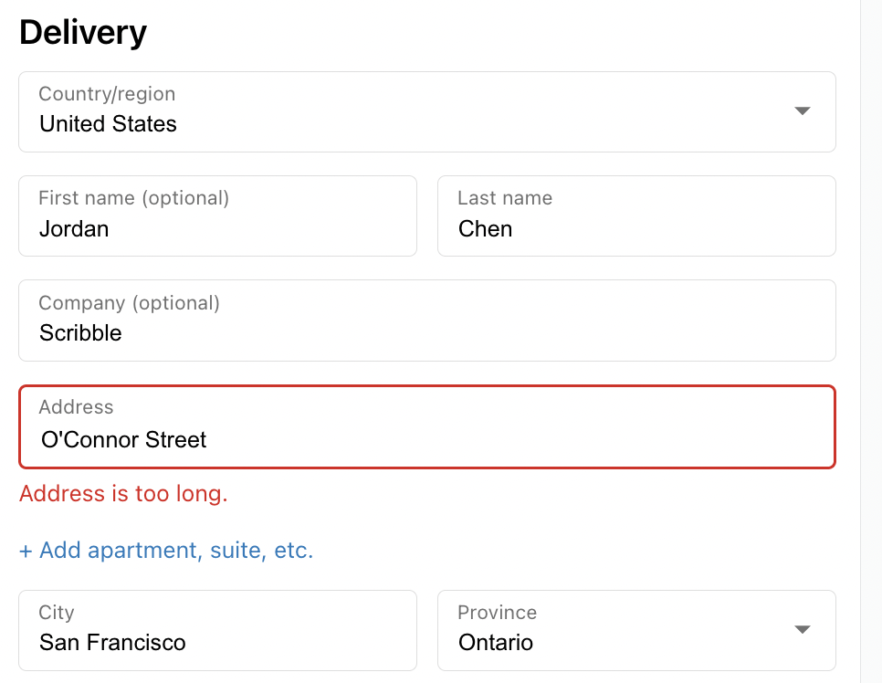 Setting a maximum character limit ensures address data stays compatible with shipping systems.