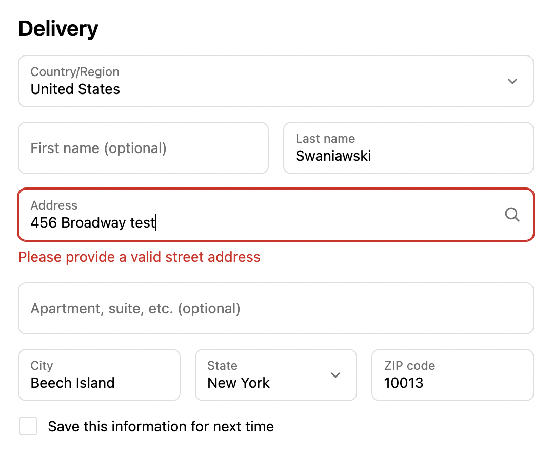 Invalid or placeholder text in address fields can easily slip through checkout, especially during testing or rushed purchases. These incorrect entries can lead to: