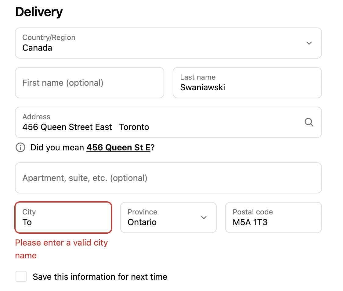By validating the city name at checkout, businesses can catch these errors early and ensure higher-quality address data.