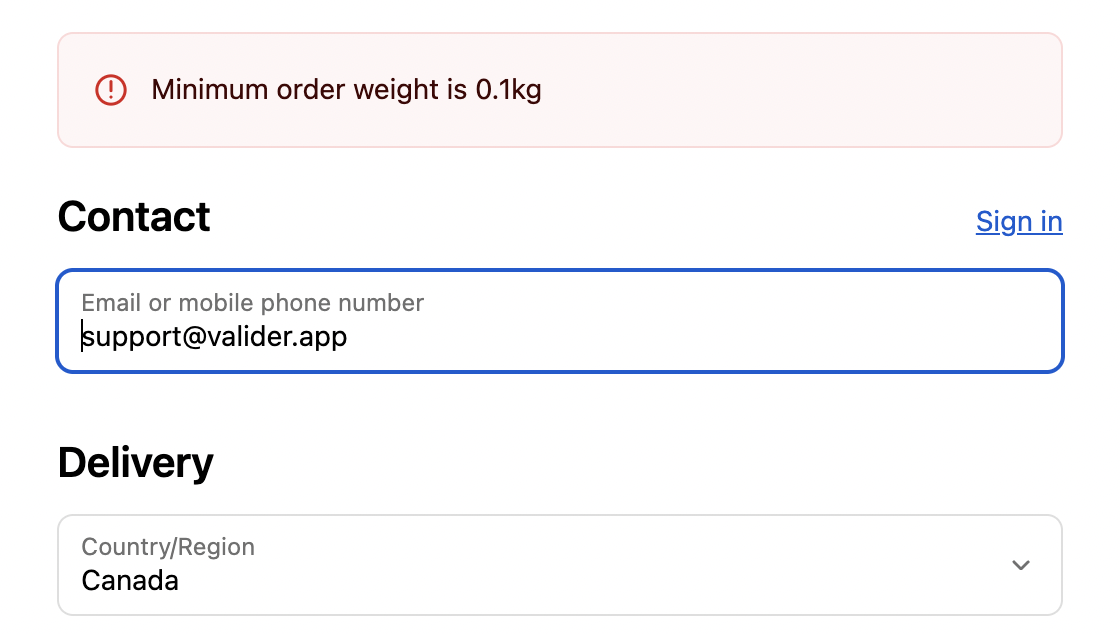 This simple yet effective cart validation tool ensures that businesses can manage their weight-based order requirements with ease, while customers are guided smoothly through the checkout process.